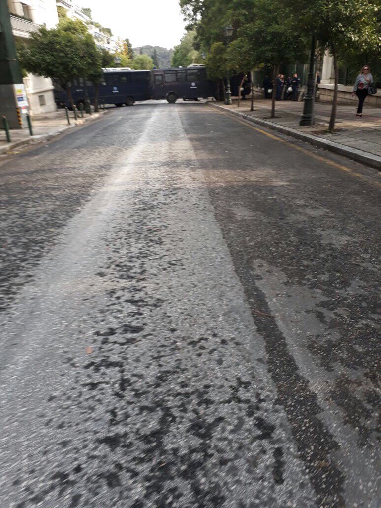 Μια φωτογραφία με κλούβες της ΕΛΑΣ επί της Ηρώδου Αττικού με την εξής λεζάντα: «Μαξίμου τώρα. Έτσι περνάει το τέταρτο μνημόνιο! #mnimonio4» έγραψε ο Λαζαρίδης.