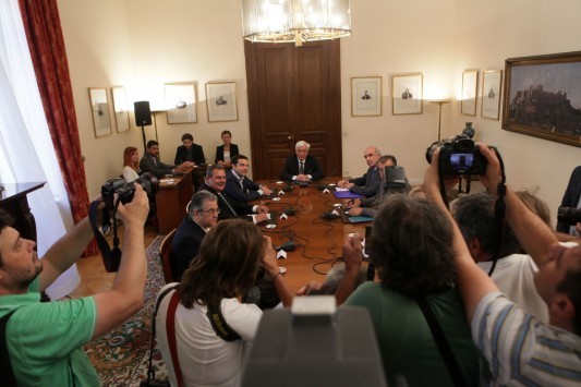 Στο σύνολό τους οι αρχηγοί των κομμάτων ξεκαθάρισαν ότι την ευθύνη του χειρισμού έχει ο Αλέξης Τσίπρας και η κυβέρνηση.