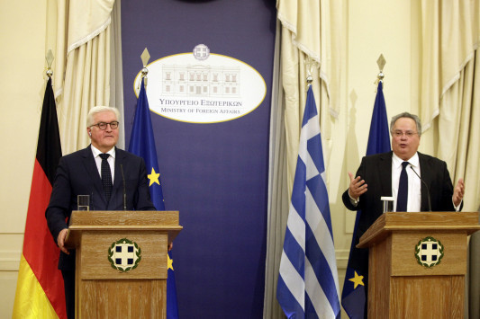 Κοινό μήνυμα προς την Τουρκία έστειλαν οι υπουργοί Εξωτερικών της Ελλάδας και της Γερμανίας Νίκος Κοτζιάς και Φρανκ Βάλτερ Σταϊνμάιερ κατα τη διάρκεια συνέντευξης Τύπου, μετά τη συνάντησή τους στο υπουργείο Εξωτερικών.